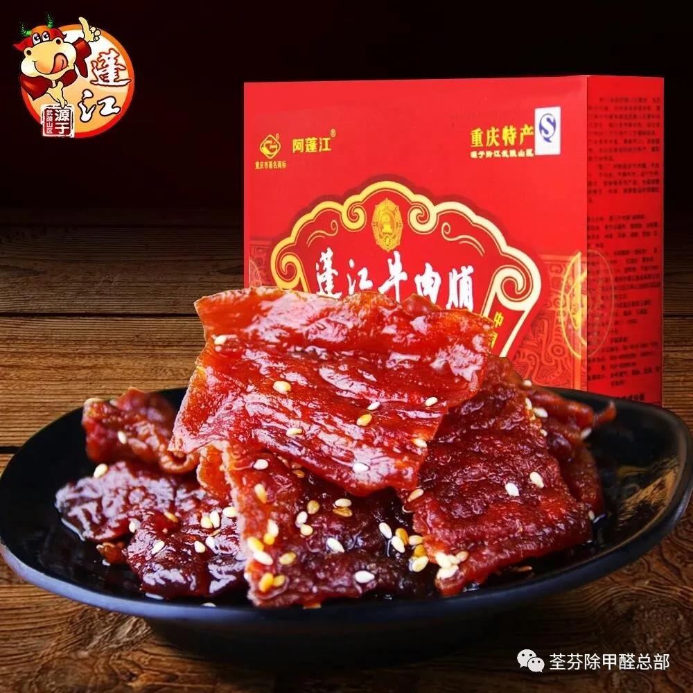精選優(yōu)質(zhì)黃牛,瘦肉為主原料,經(jīng)過腌制、干燥、熏制等一系列流程,最終成為色澤棕紅的牛肉脯,一看就胃口大開的那種。